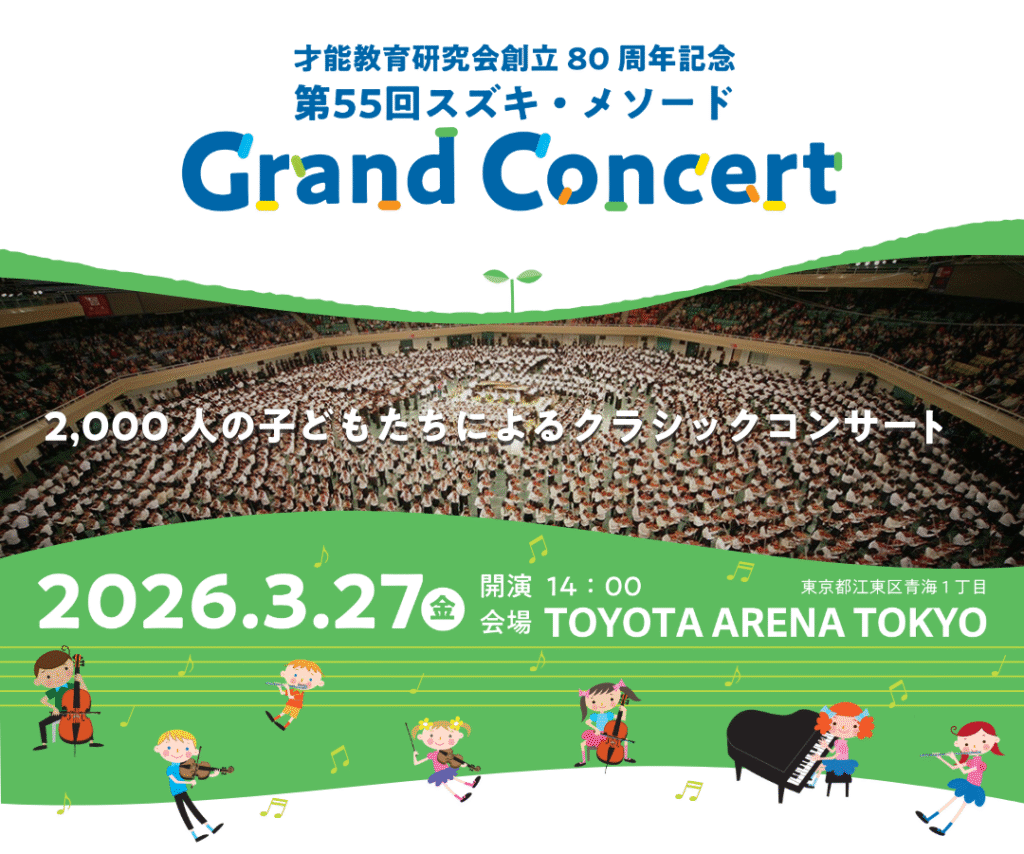 スズキ・メソードのWebマガジン「マンスリースズキ」では、前回の第54回グランドコンサート開催に合わせて、特別サイトを制作。そこには、第54回グランドコンサートの詳細とともに、これまでの開催の歴史を示す大会プログラムがすべて収納されています。アーカイブ資料としてご覧ください。